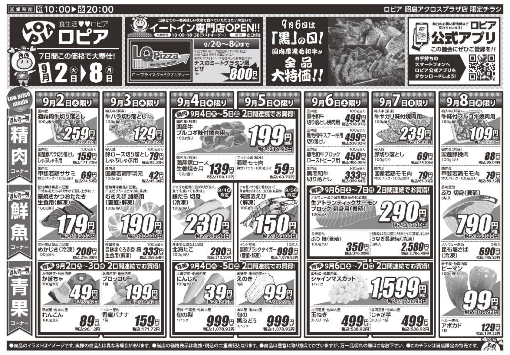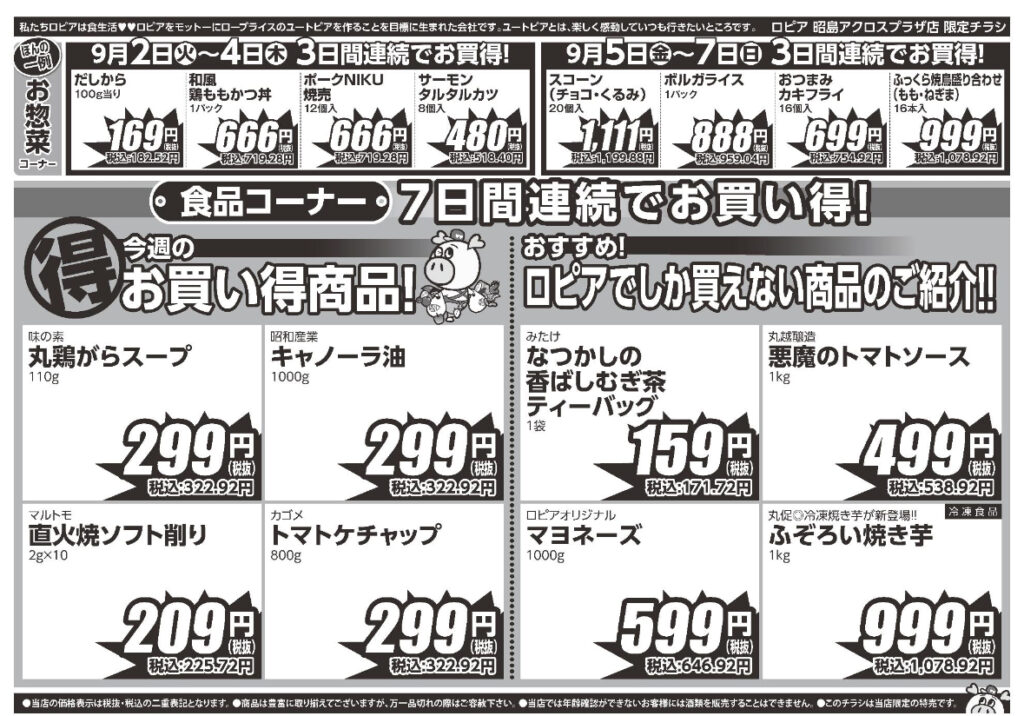 ロピア昭島アクロスプラザ店の『最新チラシ』2025年9月2日(火)~2025年9月8日(月)です。