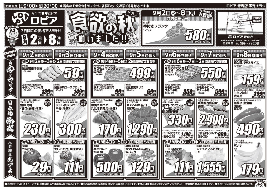 ロピア青森店の『最新チラシ』2025年9月2日(火)~2025年9月8日(月)です。