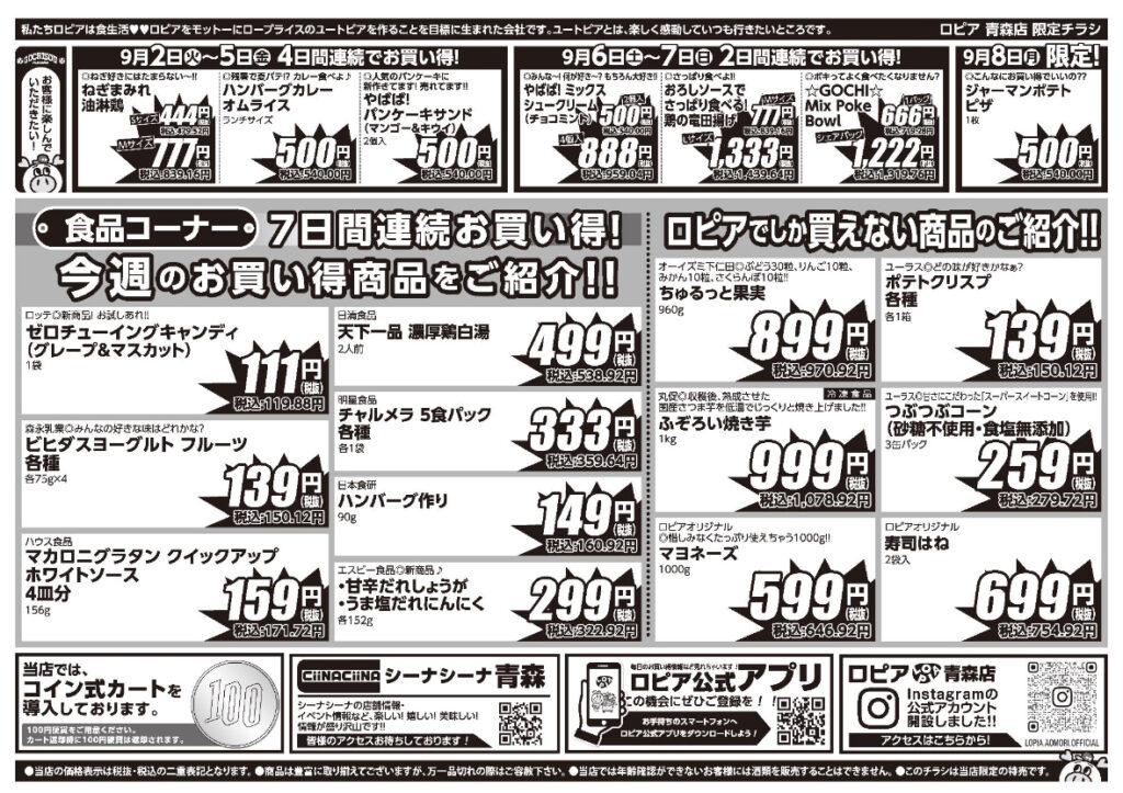 ロピア青森店の『最新チラシ』2025年9月2日(火)~2025年9月8日(月)を紹介いたします。