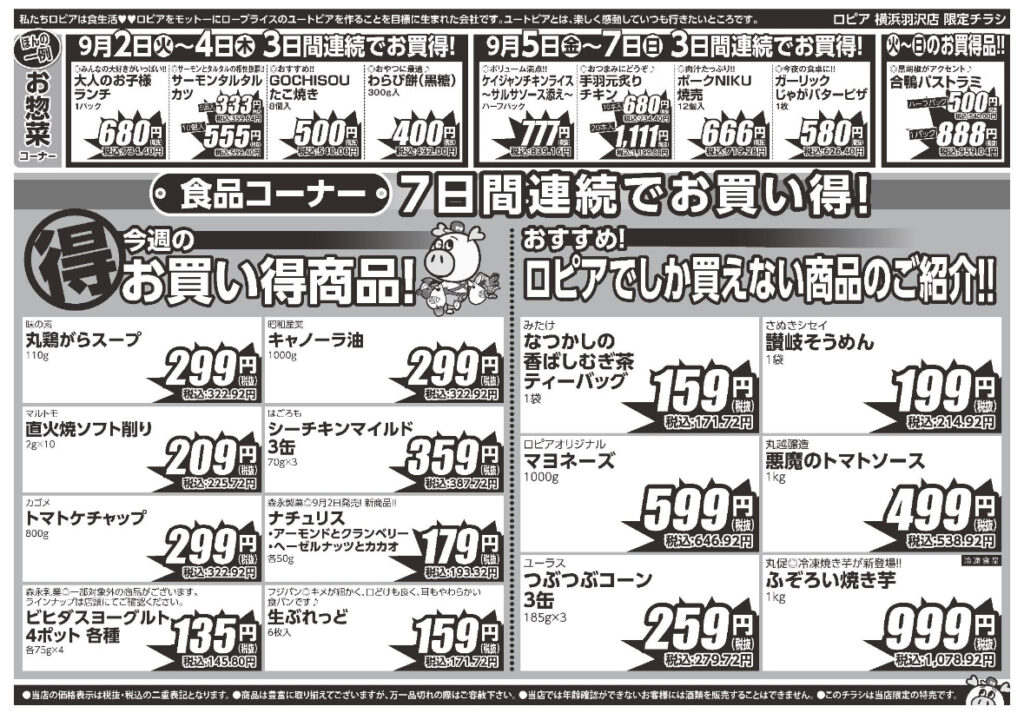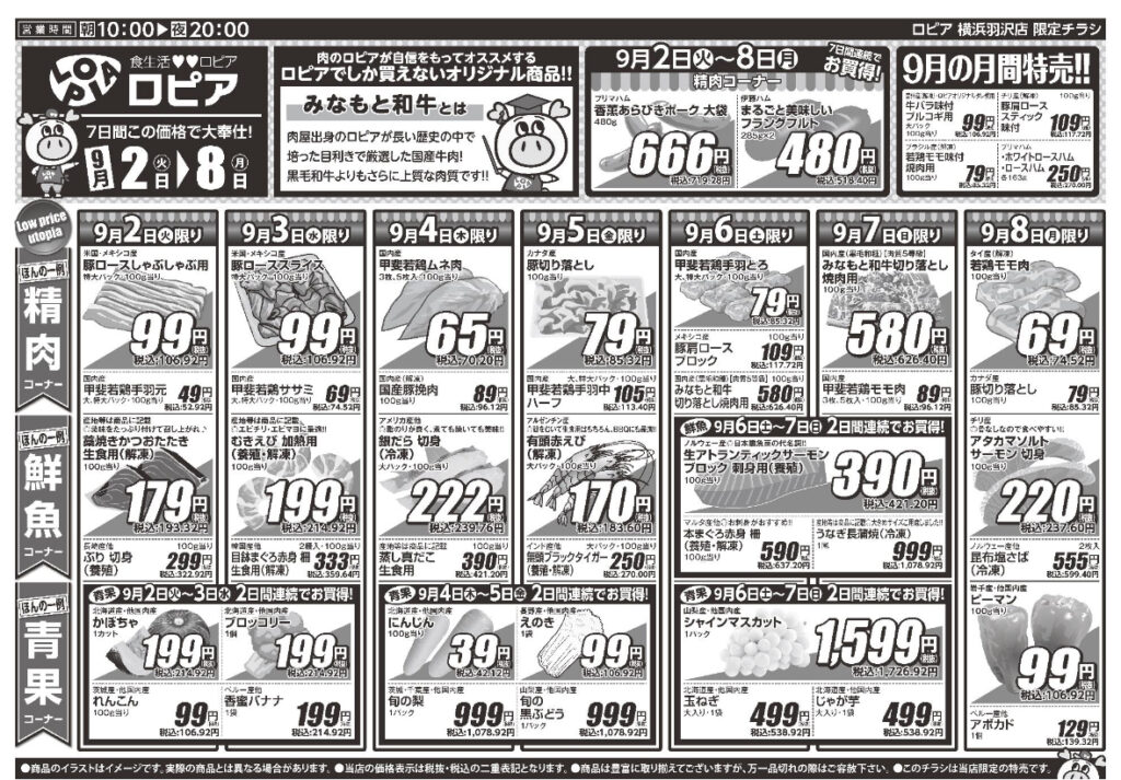 ロピア横浜羽沢店の『最新チラシ』2025年9月2日(火)~2025年9月8日(月)です。